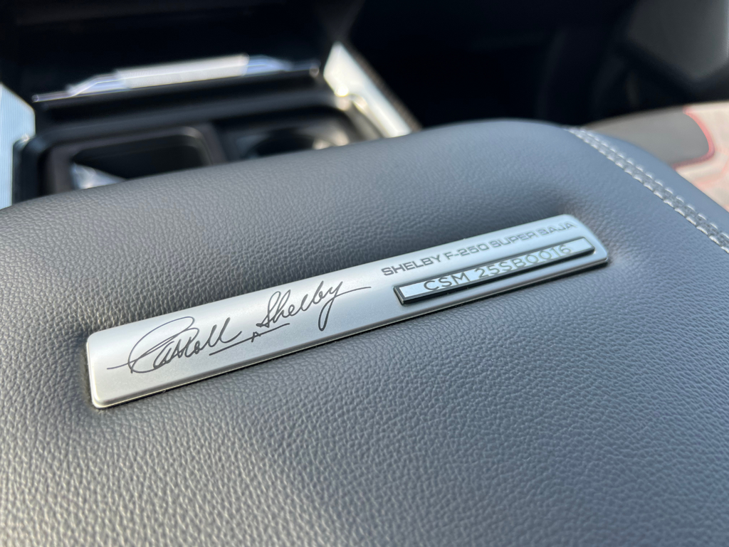 A lifted suspension system, high-performance shocks, and oversized all-terrain tires give the Super Baja true desert-racing capability, while Shelby styling adds a bold front bumper, LED lighting, and custom wheels. Inside, premium materials and exclusive Shelby branding bring refinement and comfort to the rugged Super Duty foundation.