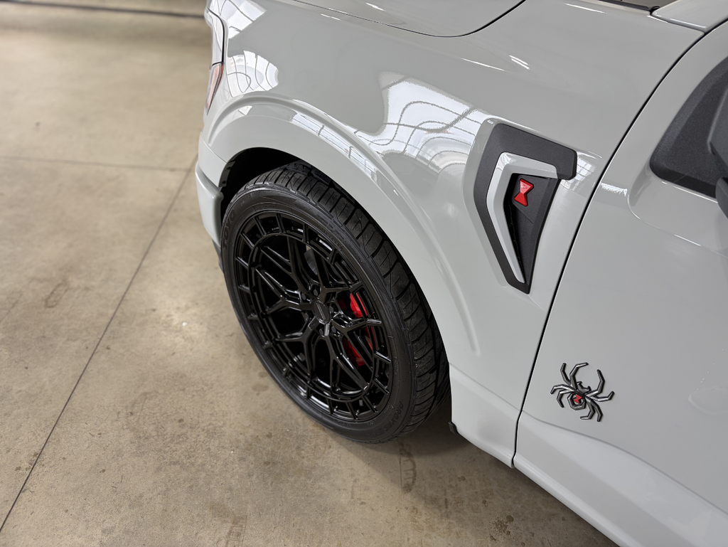 The 2026 Black Widow F-150 SR is a low-profile performance truck built to stand out. With a lowered stance, Ridetech suspension, and bold 24 Vossen wheels, it delivers sharp handling and a smooth, controlled ride. Add in high-performance tires and an available 710-HP supercharger, and you get power that matches its aggressive look.