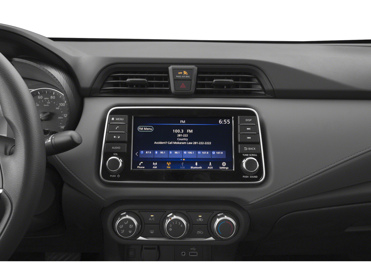 - Radio: AM/FM Audio System -inc: RDS, MP3, aux-in, 7" Advanced Drive-Assist Display, NissanConnect featuring Apple CarPlay and Android Auto, Bluetooth® hands-free phone system, streaming audio via Bluetooth®, interface for iPod and other compatible devices, hands-free text messaging assistant, Siri Eyes Free/Google Assistant voice recognition, 4 speakers, 12-volt DC power outlet and 3 USB ports (2-charge only)